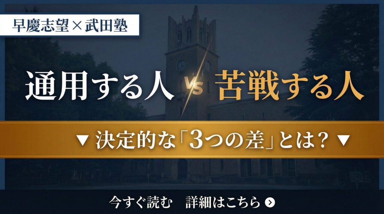 武田塾だけで全てをカバーしようとするのではなく、自分に足りない部分を冷静に分析し、必要に応じて他のリソースを組み合わせることが、早慶合格への現実的な道筋です。